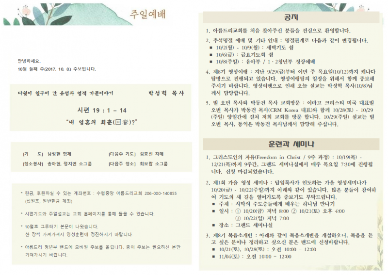 2017/10/08_ 2청년 예배