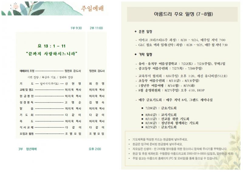 헌금 및 후원안내