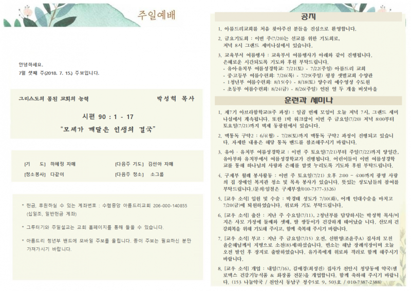 2018/07/15_ 2청년 예배