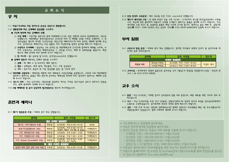 헌금 및 후원안내